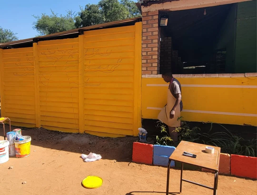 In June 2025, we and a group of volunteers, and with the help of students and teachers, we painted the new classrooms, inside and out, including a beautiful mural designed by Zoe’s brother, Finn.